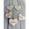 Dřevěná cedulka ve tvaru srdce s nápisem. Babičce