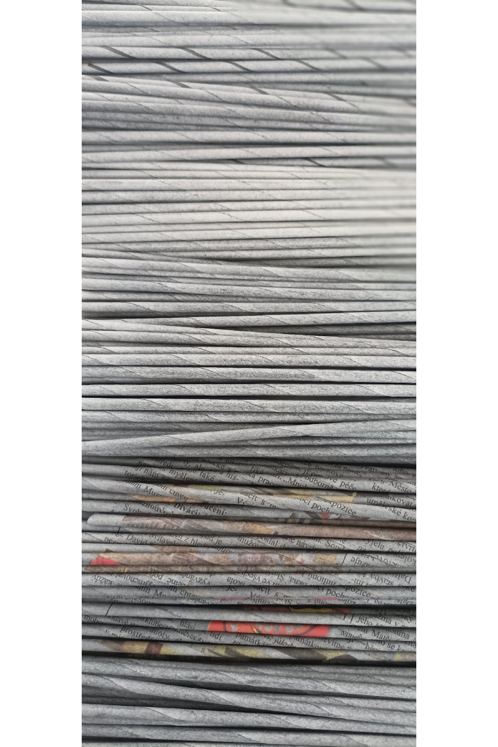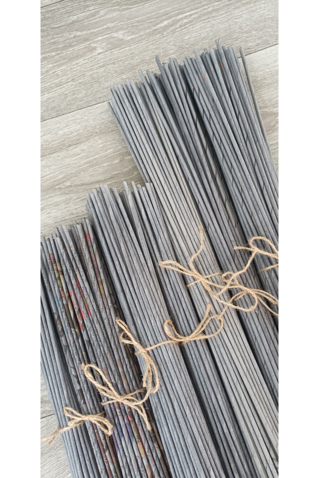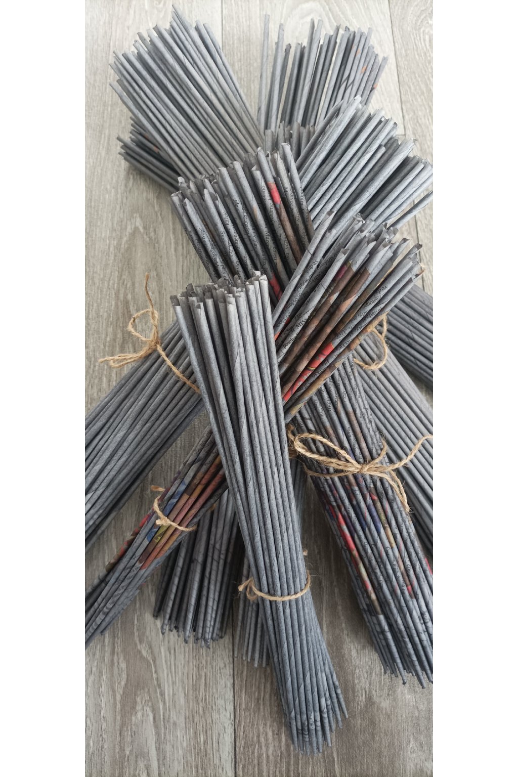 Papírové ruličky z novinového papíru, Havany, barevného novinového papíru, pruh 14,5 cm, drát 1,6mm, různé delky, barva Chevas šeď holubí, v sadě 550 kusů.