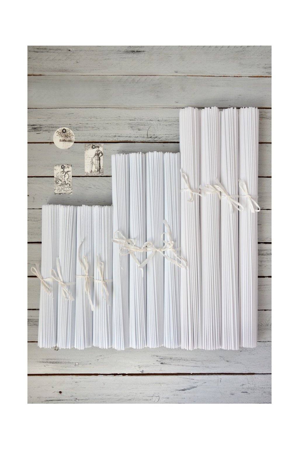 Z dovozového průklepového papíru. Sněhově bílé papírové ruličky, dlouhé 26 cm. / hedvábné /
